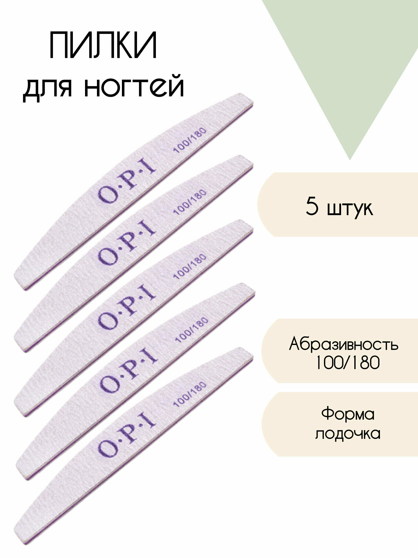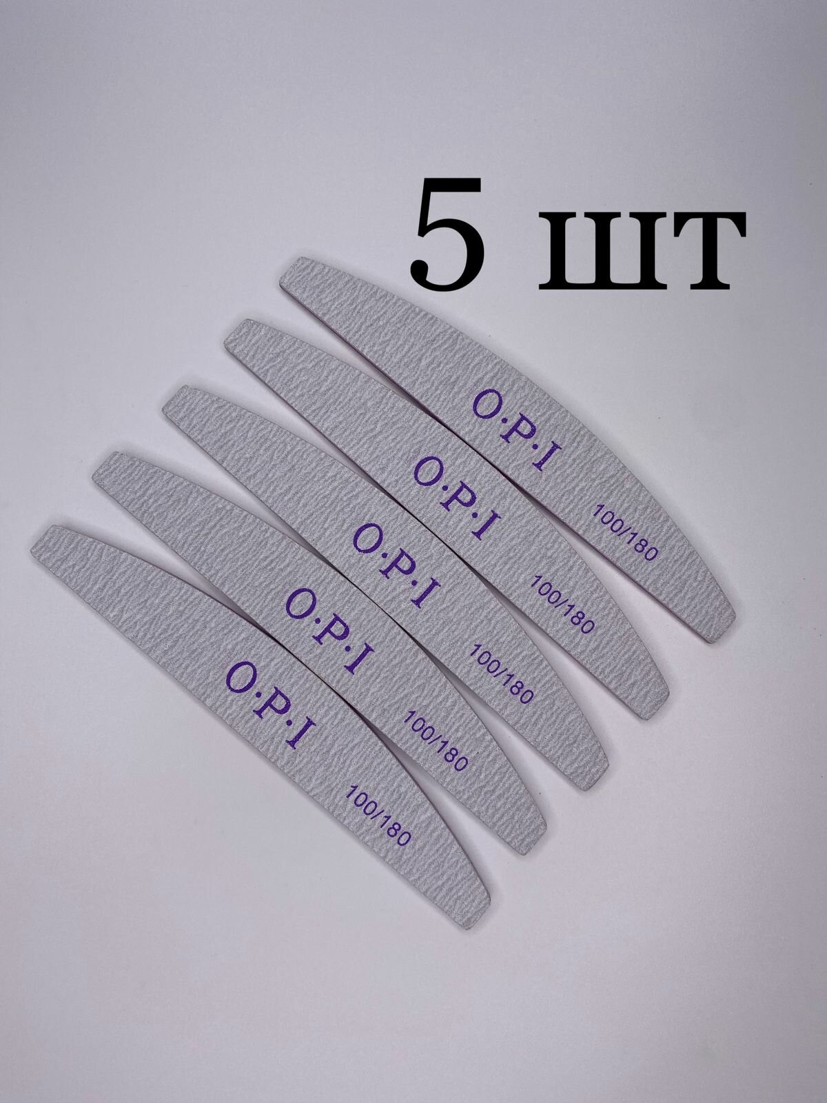 OPI пилки для ногтей 100/180, 5 шт, набор пилок для маникюра и педикюра, полумесяц
