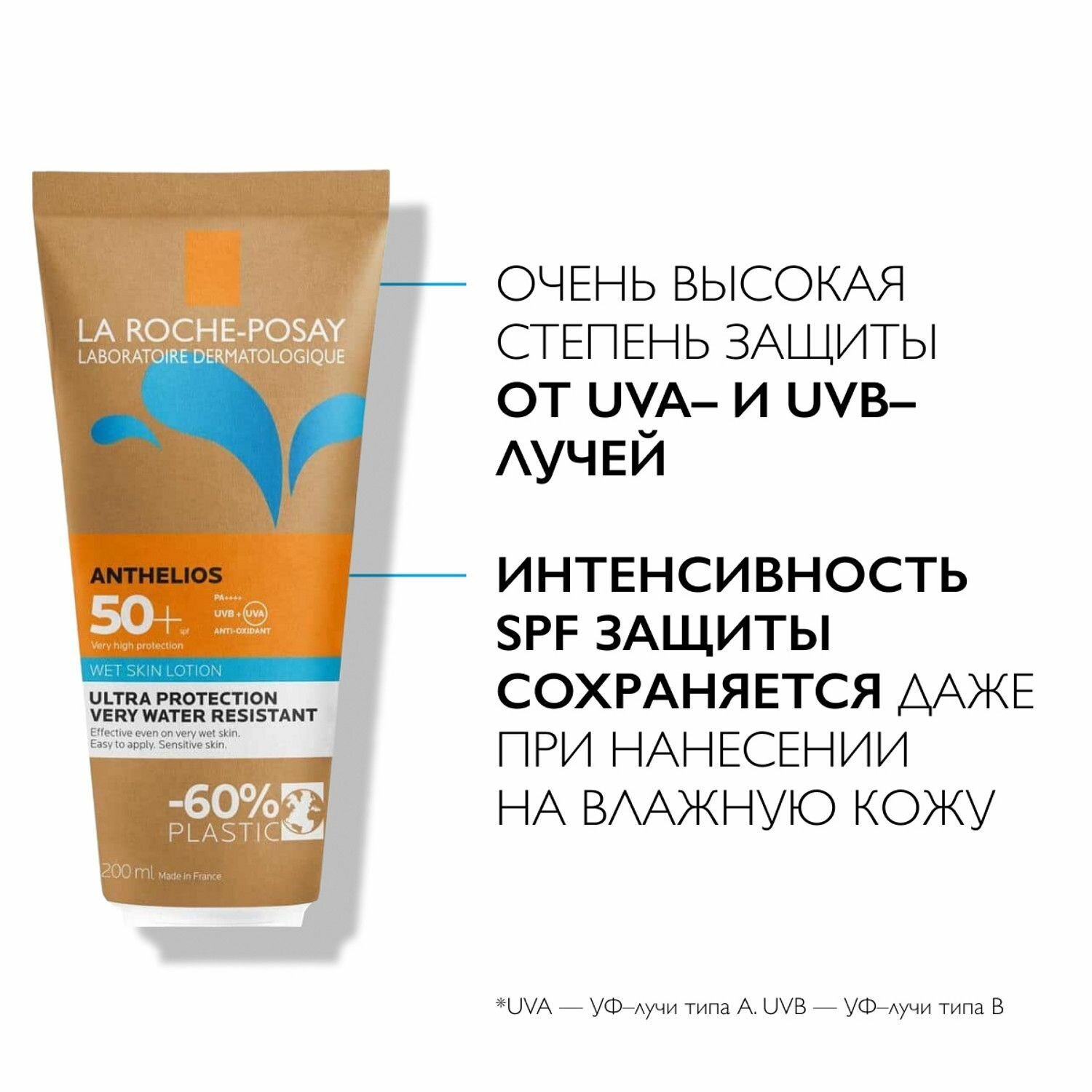 La Roche-Posay ANTHELIOS Солнцезащитный гель с технологией нанесения на влажную кожу SPF 50+, 200 мл