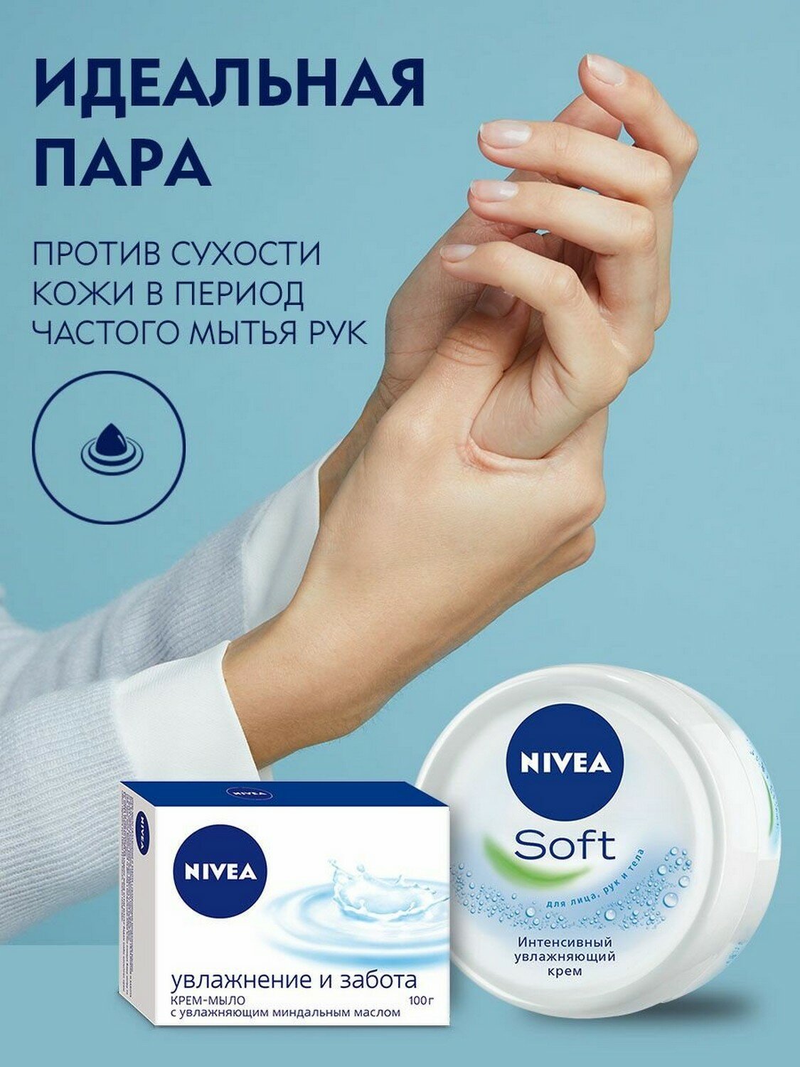 Nivea Крем-мыло Увлажнение и забота, 2 шт. x 100 г /