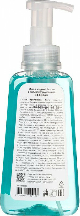 Мыло жидкое Luscan пенное, антибактериальное 500 мл, с дозатором (пена 450-550)