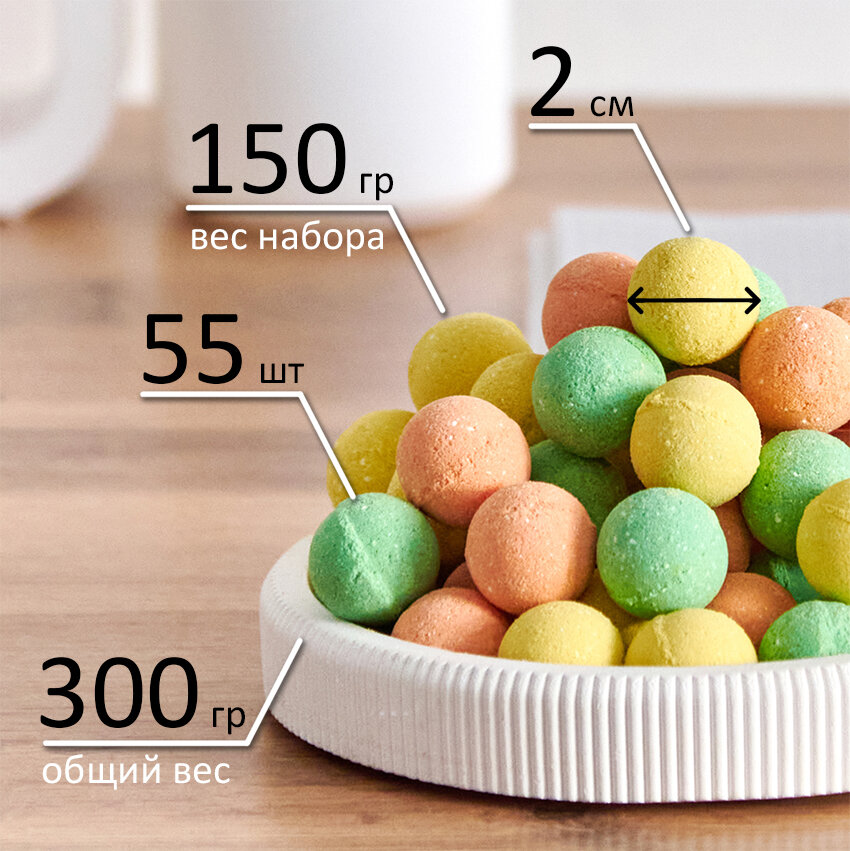 Мини бомбочки для ванны детские , набор бурлящих шариков 55 шт. Подарок для девочки и женщины.