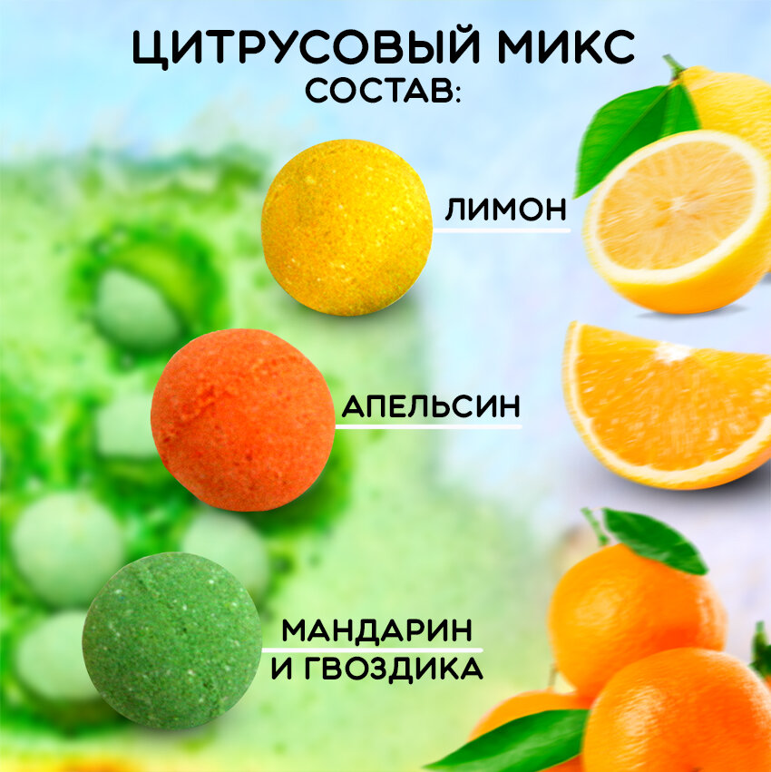 Веселый лемур / Натуральные мини-бомбочки для ванн "цитрусовый микс" 33шт