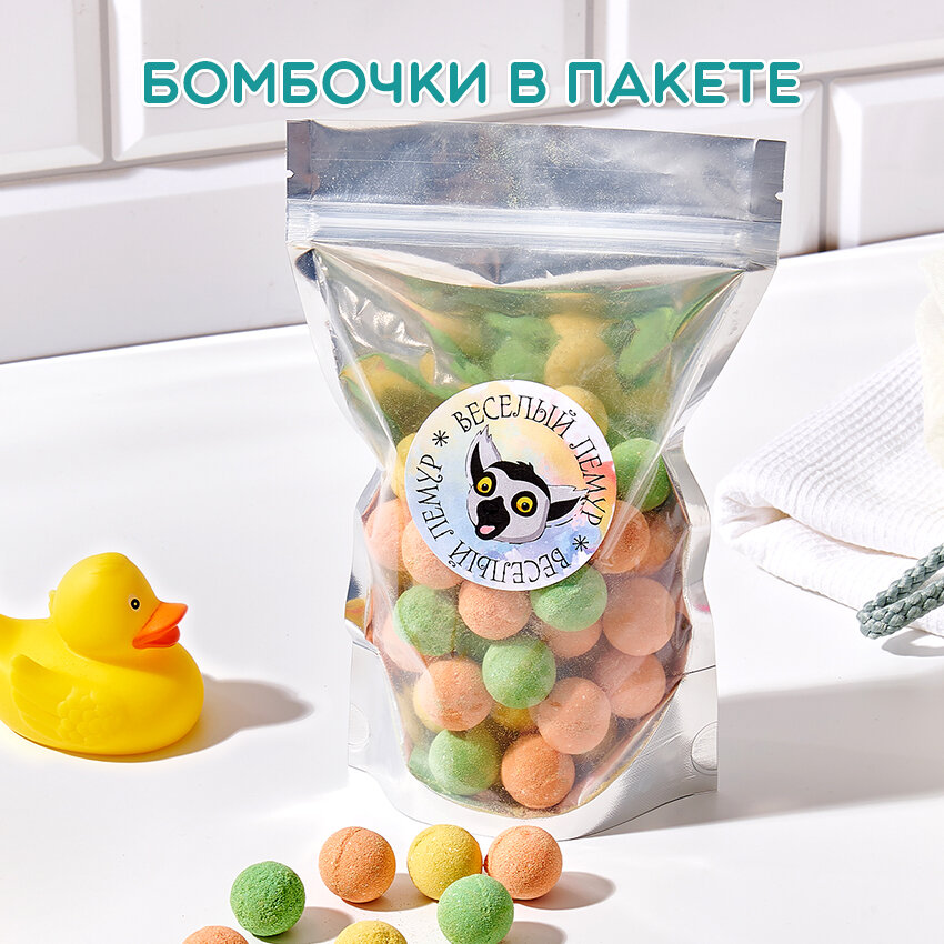 Веселый лемур / Натуральные мини-бомбочки для ванны 55шт интересное: