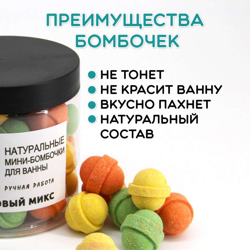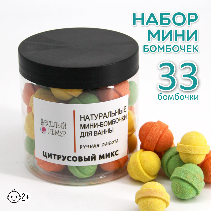 Веселый лемур / Натуральные мини-бомбочки для ванн "цитрусовый микс" 33шт интересное: