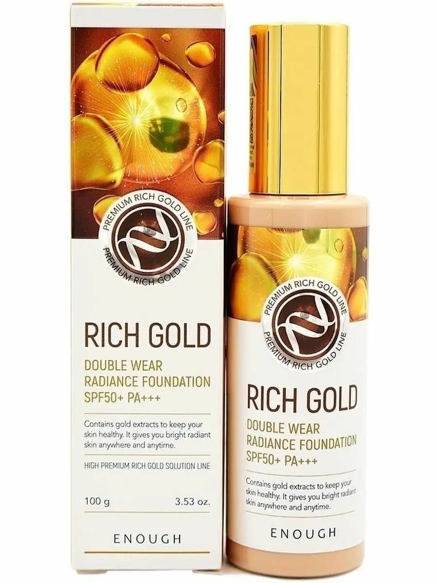 Тональный крем с частичками золота ENOUGH Rich Gold Double Wear Radiance Foundation SPF50+ P, 100 г .