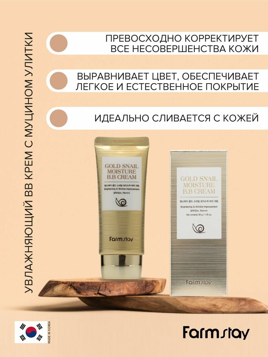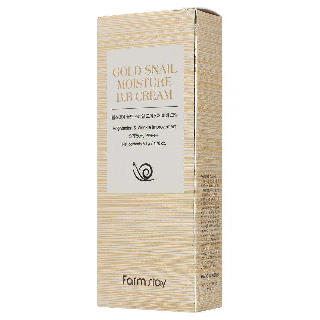 Крем ВВ тональный для лица Farm stay Gold Snail Moisture BB Cream SPF 50+, РА+++ увлажняющий с муцином улитки