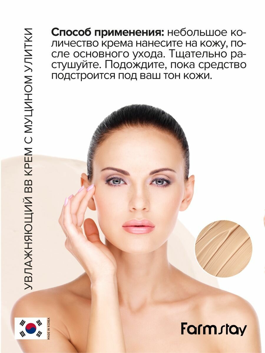 FarmStay Увлажняющий BB крем с муцином улитки SPF 50+ / PA+++, 50г интересное:
