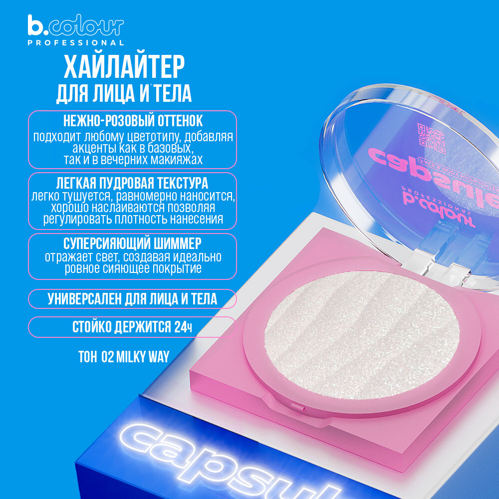 B.COLOUR PROFESSIONAL Хайлайтер для лица, хайлайтер для тела сияющий, сухой, с легкой муссовой текстурой, CAPSULE 02 MILKY WAY