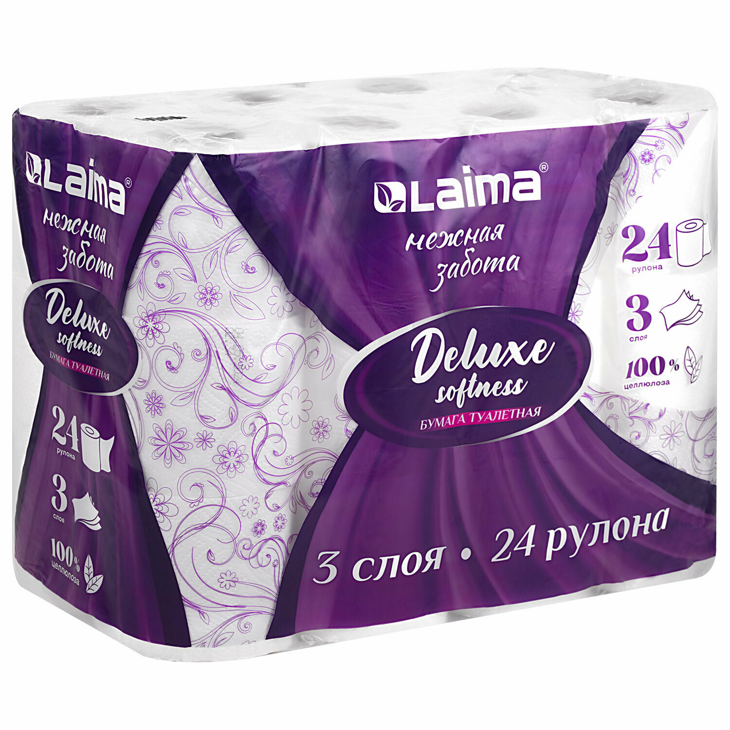 Купить Бумага туалетная 3-х слойная, 24 рулона (24х16,5 м), LAIMA Deluxe, 100% целлюлоза, 115397