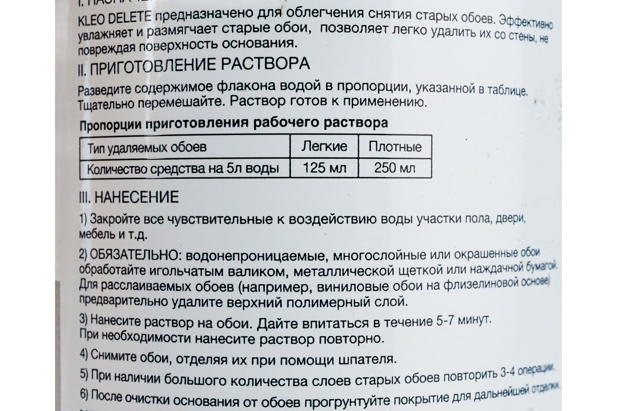 Средство для удаления старых обоев антиобои KLEO DELETE 500мл интересное: