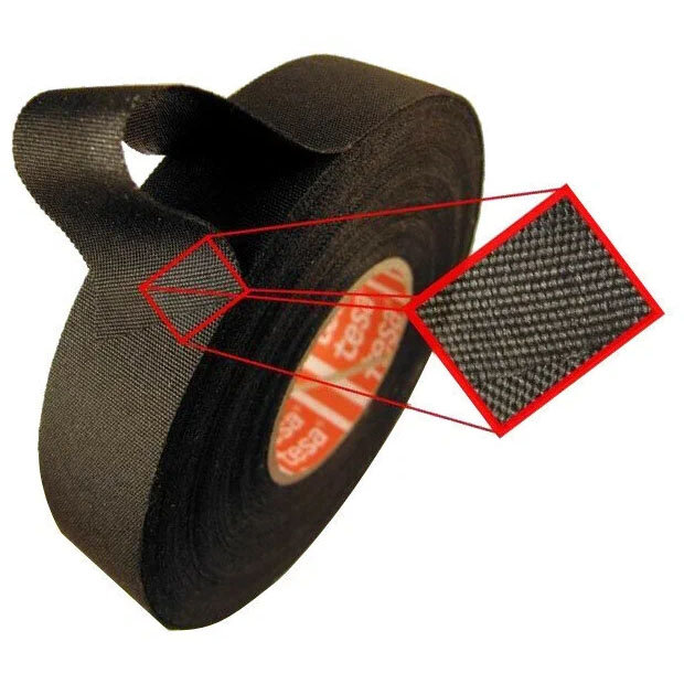 Изолента Теса 51036, 1 шт. 19 мм. длина 25 м. ПЭТ-ткань лавсан автомобильная профессиональная черная подкапотная для жгутования в моторном отсеке