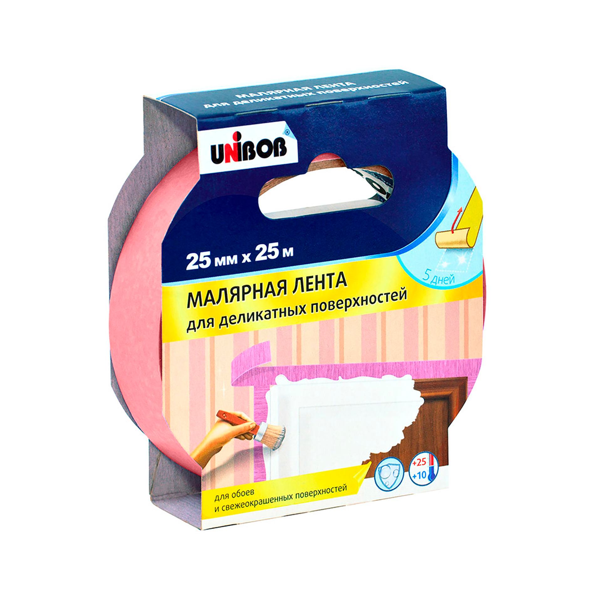 Клейкая лента малярная для деликатных поверхностей 25мм х 25м UNIBOB (розовая)