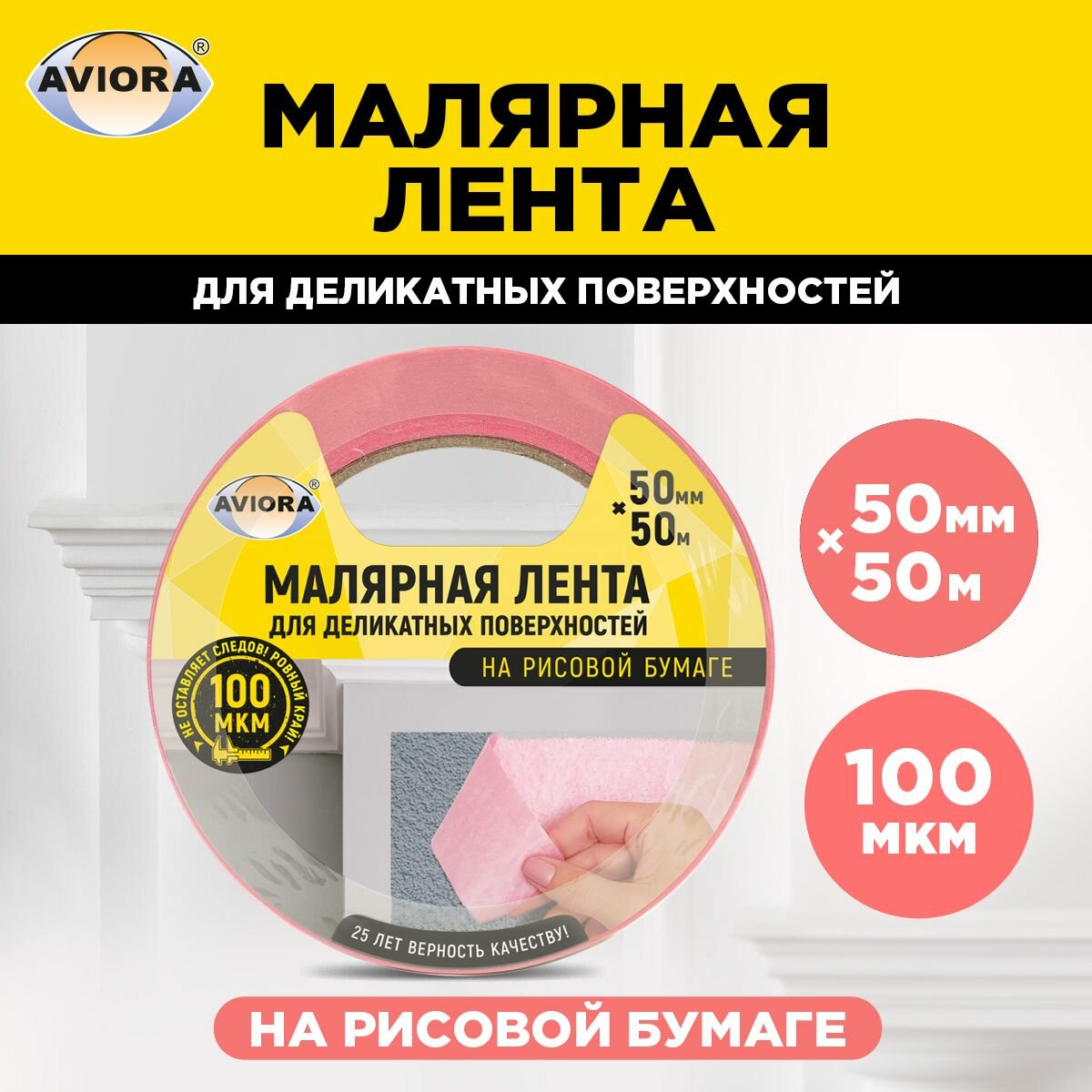 Купить Aviora Малярная лента для деликатных поверхностей на рисовой бумаге 50мм х 50м, 304-078 .