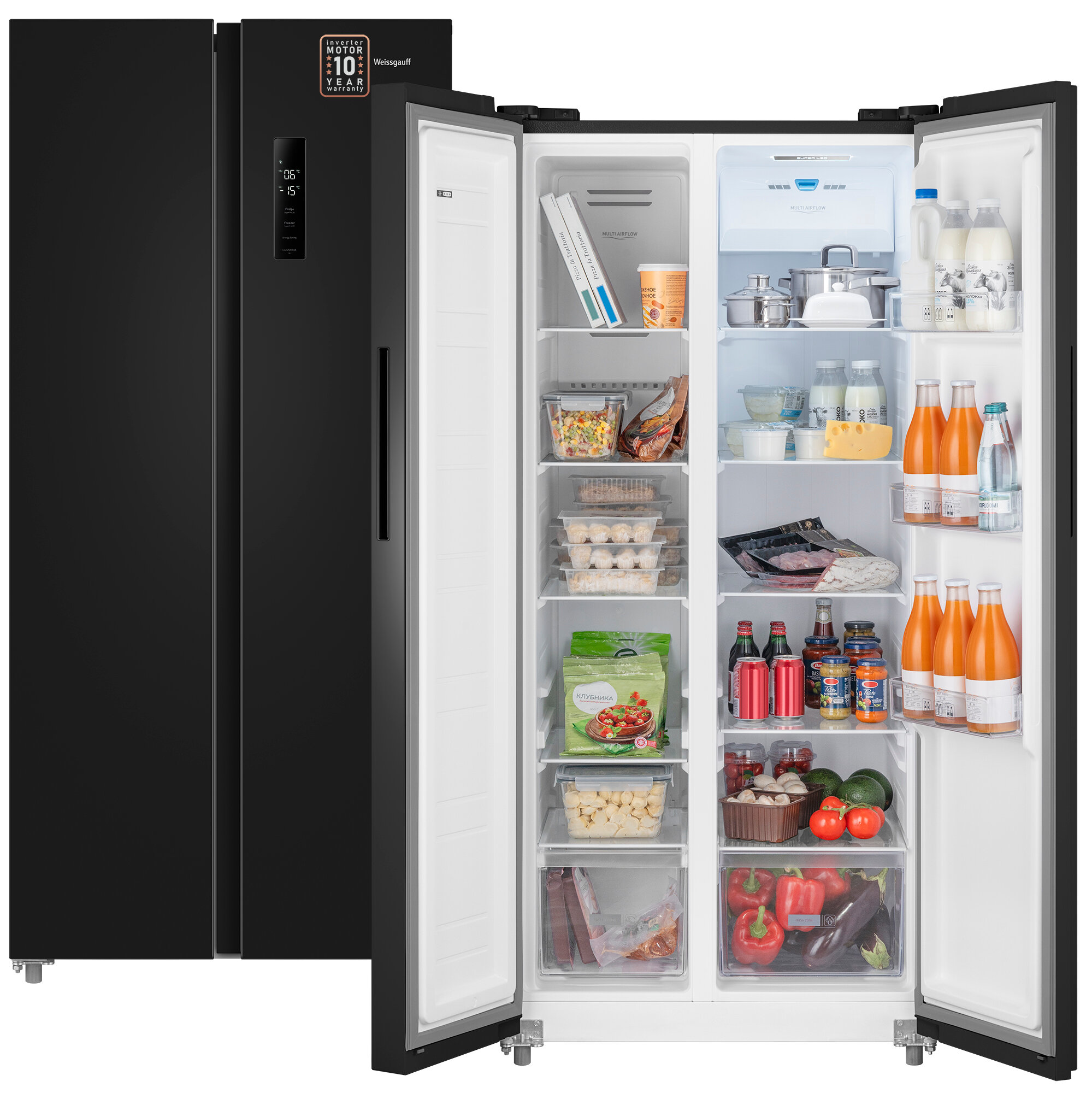 Купить Отдельностоящий холодильник с инвертором Weissgauff WSBS 500 Inverter NoFrost Black Side by Side двухдверный, 3 года гарантии, Мощность замораживания 12 кг сутки, Сенсорное управление, Цифровой дисплей, Большой общий объём 500 л, Тихий режим работы