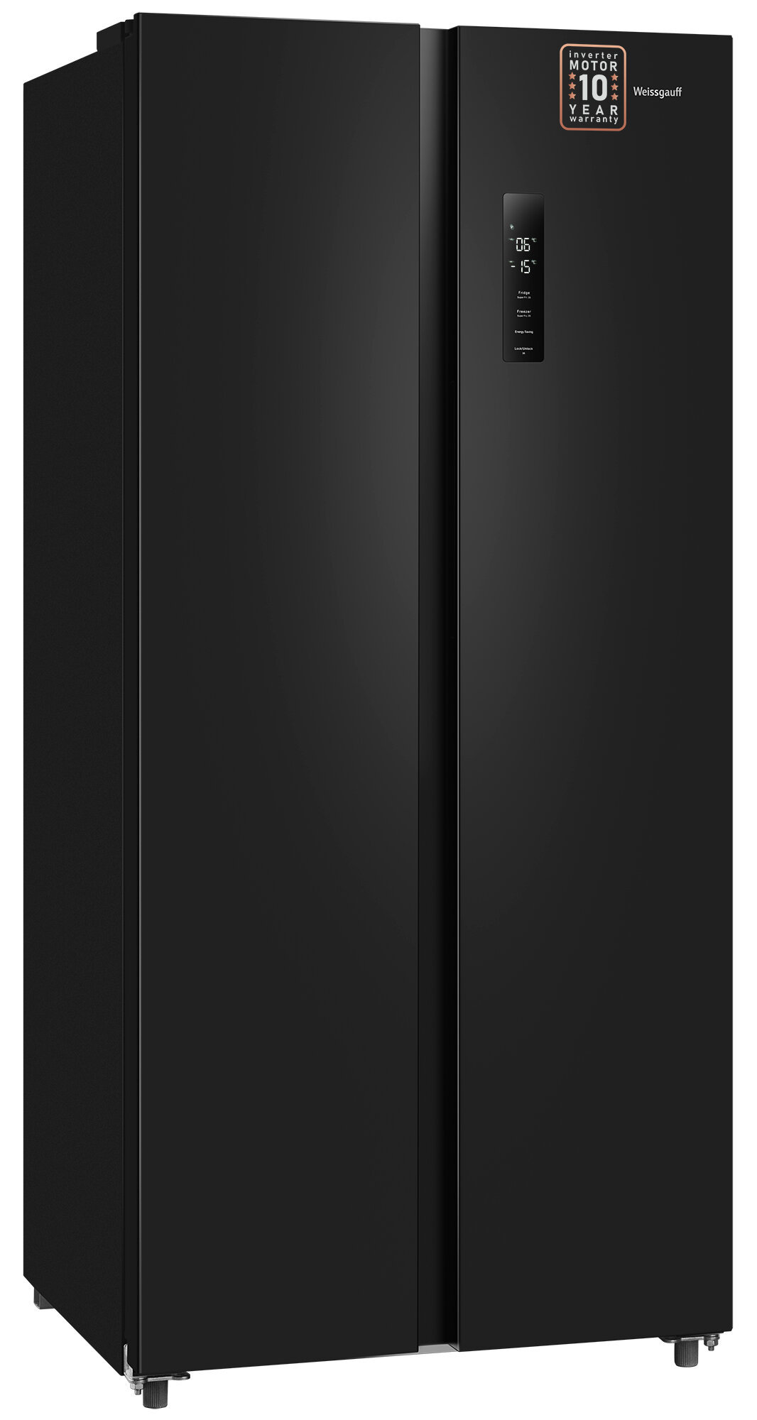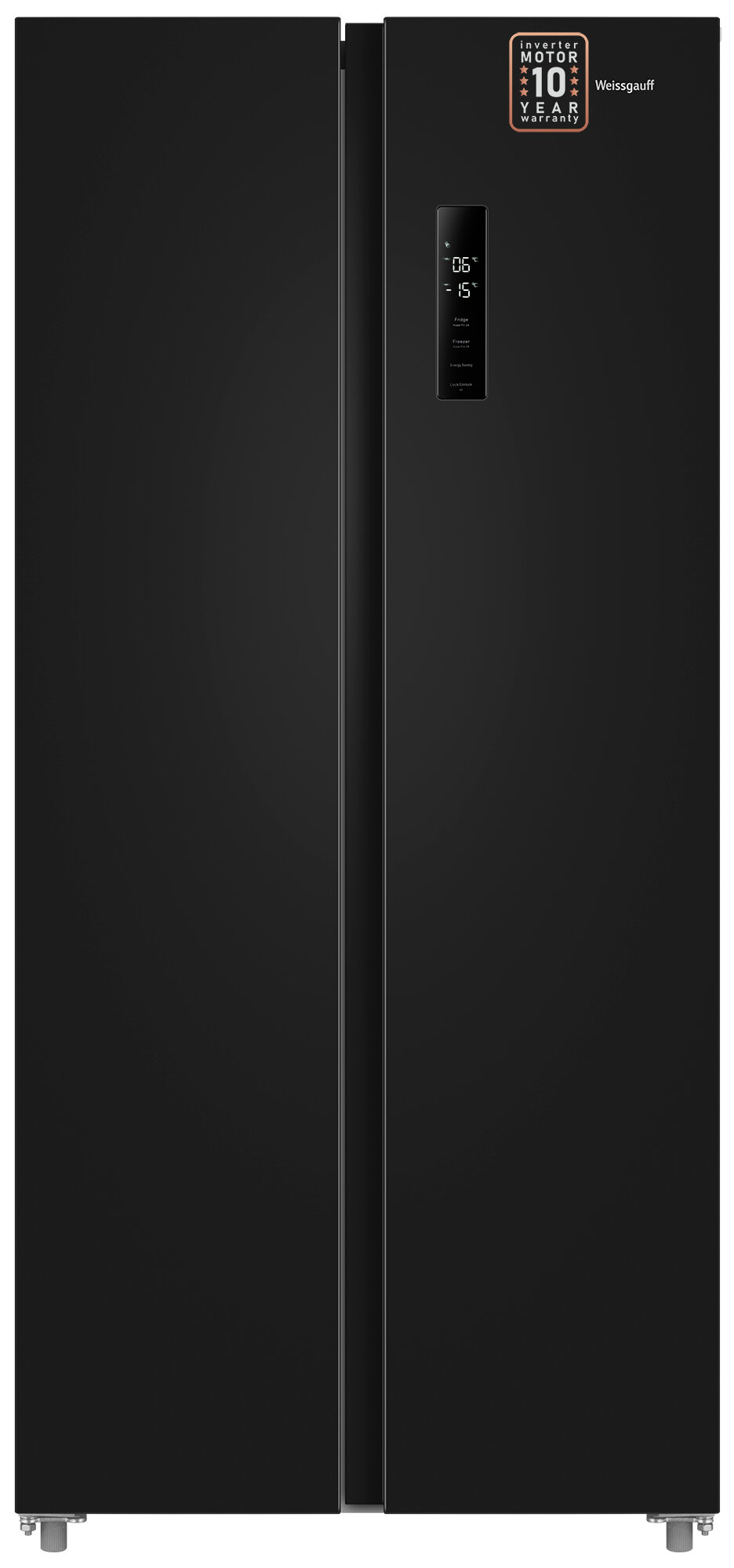 Отдельностоящий холодильник с инвертором Weissgauff WSBS 500 Inverter NoFrost Rock Glass Side by Side двухдверный, 3 года гарантии, Мощность замораживания 12 кг сутки, Сенсорное управление, Цифровой дисплей, Большой общий объём 500 л, Тихий режим работы