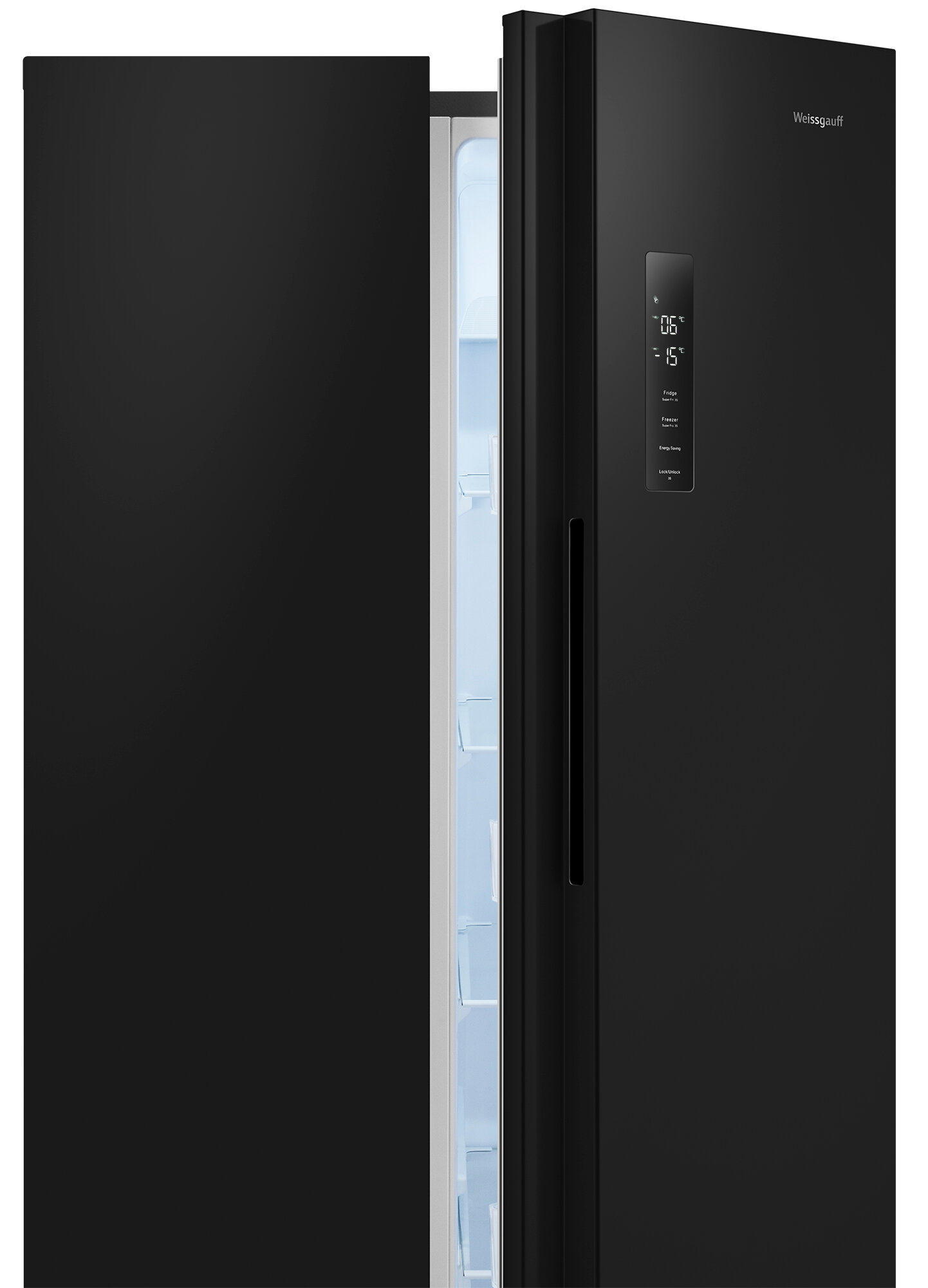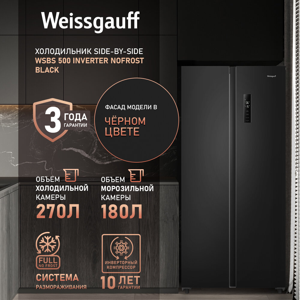 Отдельностоящий холодильник с инвертором Weissgauff WSBS 500 Inverter NoFrost Black, двухдверный