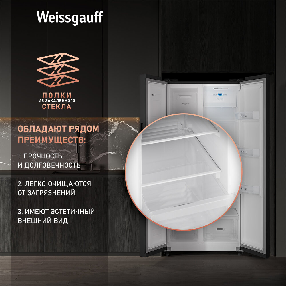 Холодильник side by side Weissgauff Wsbs 500 Inverter NoFrost Black
