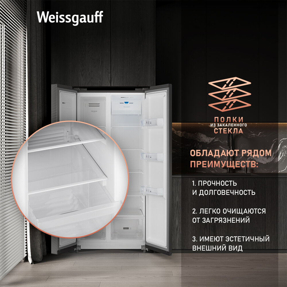 Холодильник side by side Weissgauff Wsbs 500 Inverter NoFrost Black