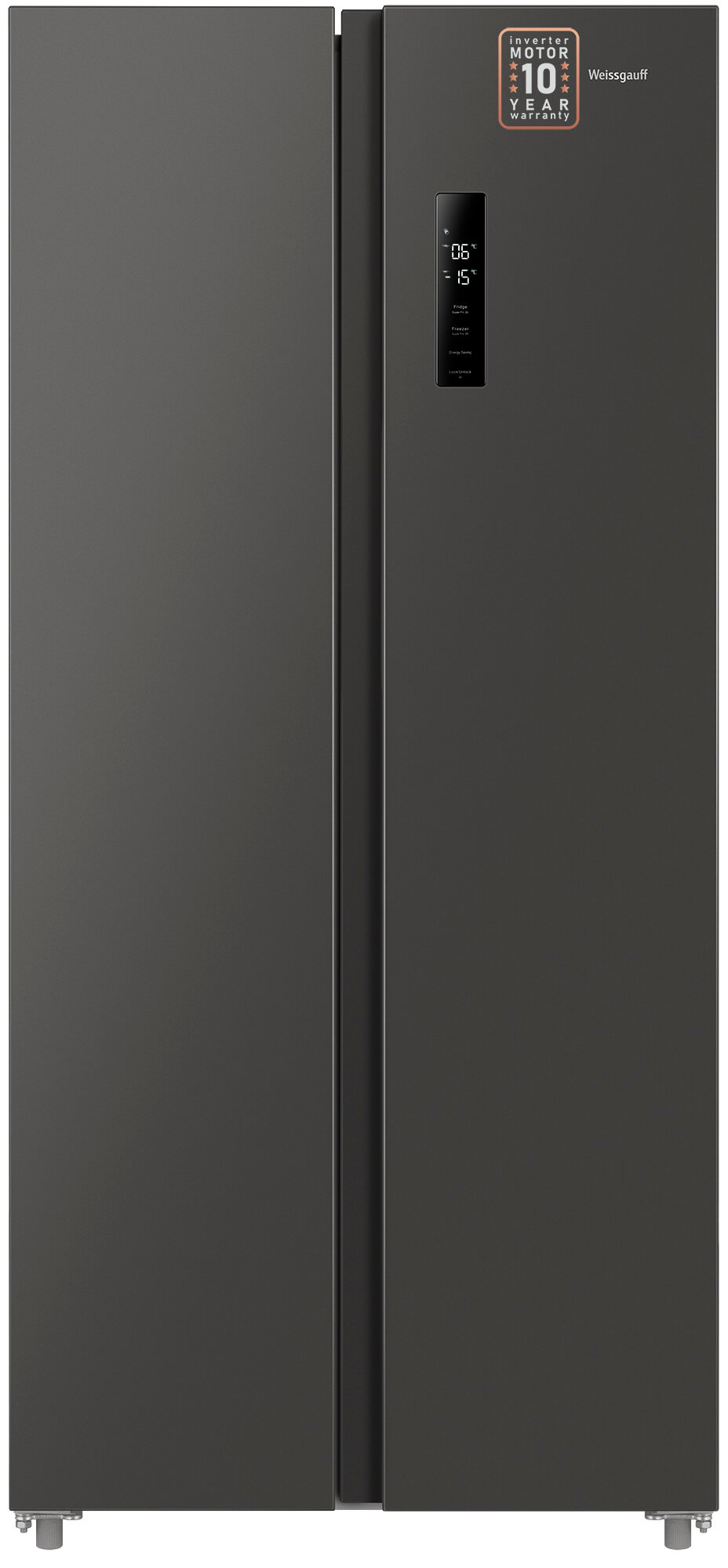 Отдельностоящий холодильник с инвертором Weissgauff WSBS 500 Inverter NoFrost Dark Grey