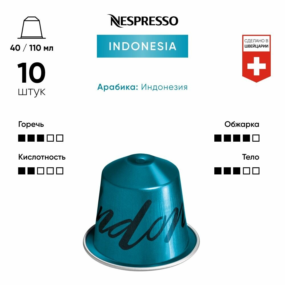 Кофе в капсулах Nespresso ORIGINAL Indonesia, 10 кап., 40 и 110мл