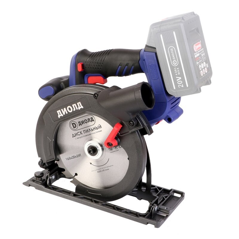 Пила дисковая аккумуляторная диолд АДП-20ЛИ-02 (без АКБ и ЗУ) / пила циркулярная, 20 В, 4700 об/мин, диск 165мм, бесщеточный двигатель, производитель Россия