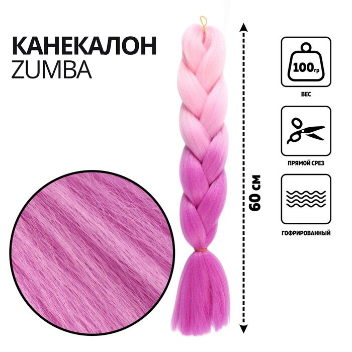 ZUMBA Канекалон двухцветный, гофрированный, 60 см, 100 гр, цвет светло-розовый/светло-фиолетовый
