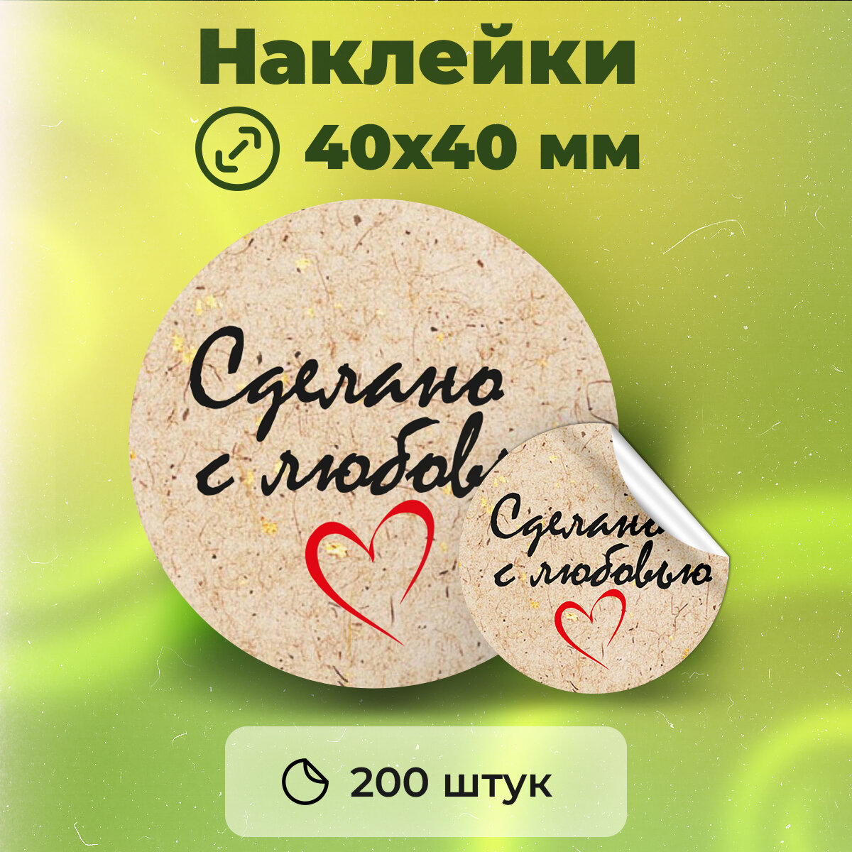 Купить Наклейки "Сделано с любовью" диаметр 40 мм, 200 штук