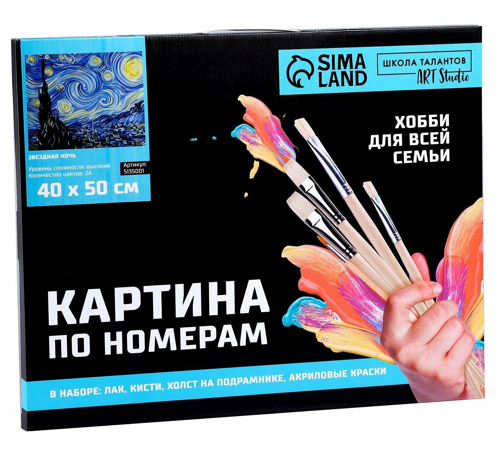 Картина по номерам Школа талантов на холсте с подрамником "Звездная ночь" Винсент ван Гог, 40х50 см