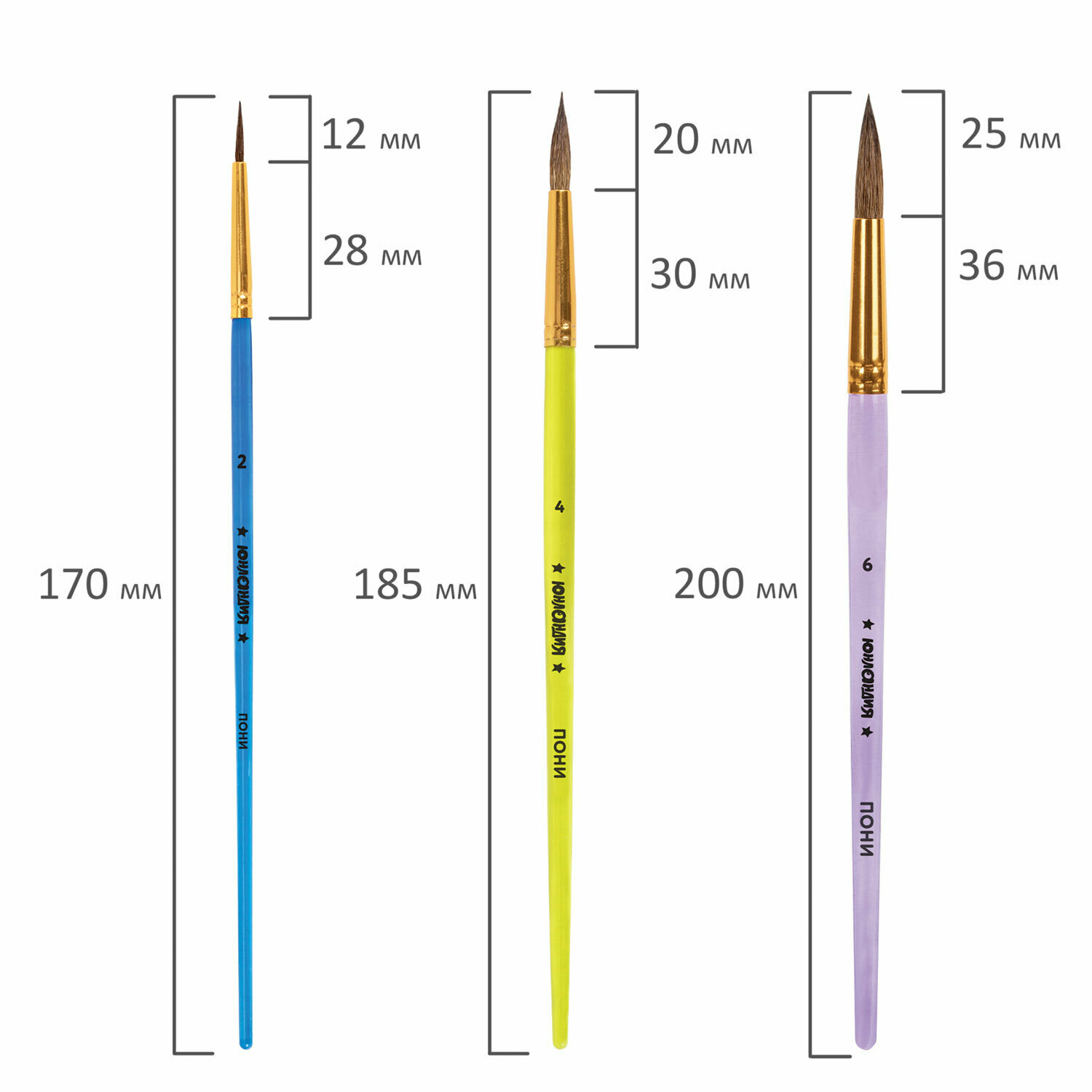Кисти для рисования в школу набор 3 штуки, кисточки круглые № 2 4 6, пони, Юнландия, 201068 интересное: