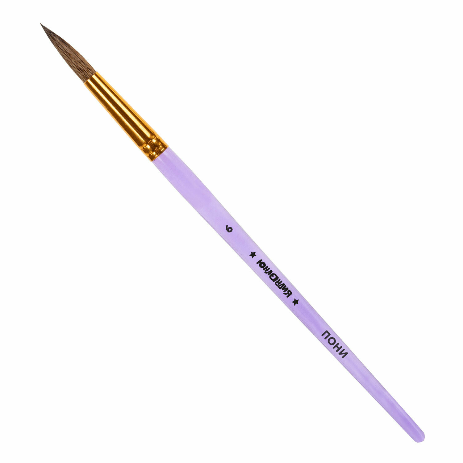 Кисти для рисования в школу набор 5 штук, кисточки круглые № 2 3 5 6 8, пони, белка, Юнландия, 201070