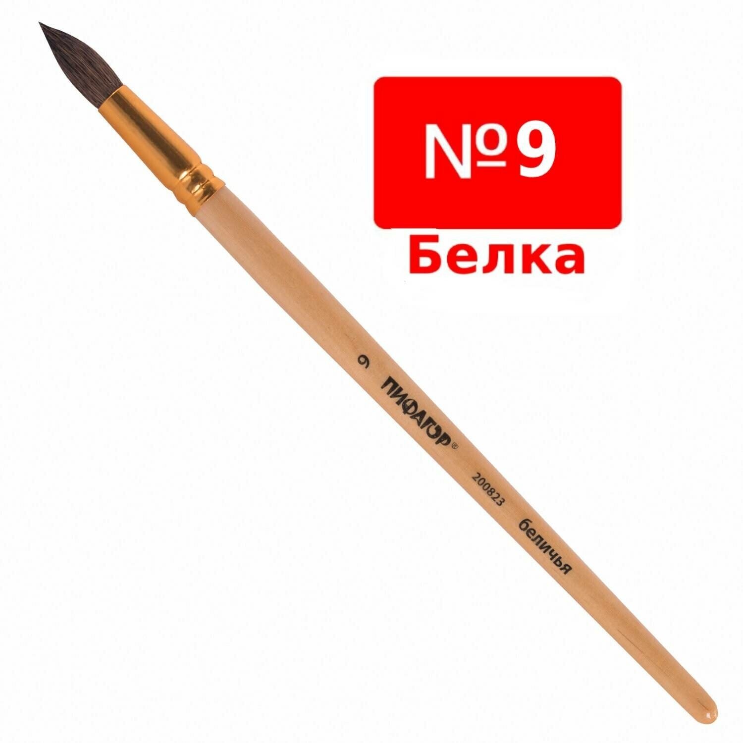 Кисть художественная Пифагор белка, круглая, № 9 (200823) интересное: