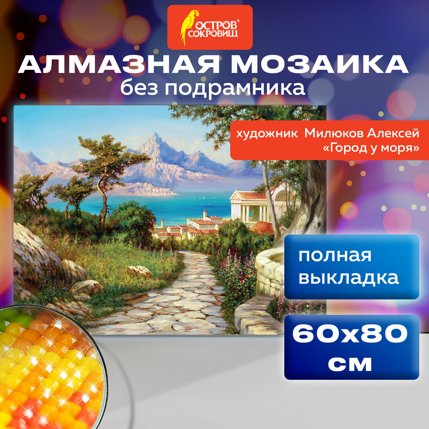 Купить Алмазная мозаика без подрамника 60x80 см, картина стразами большая Город у моря, набор для творчества для детей и взрослых, Остров Сокровищ, 663870