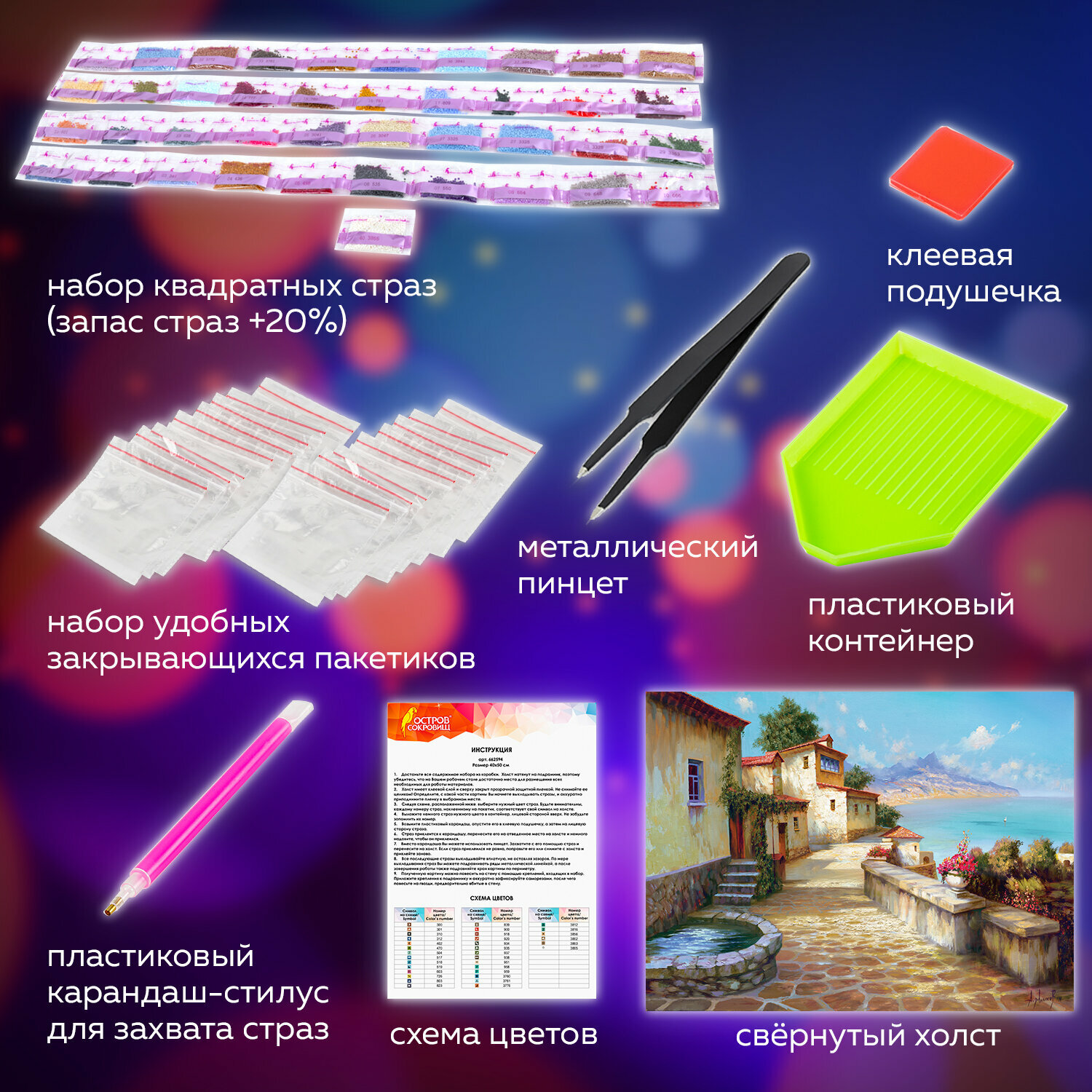 Алмазная мозаика без подрамника 60x80 см, картина стразами большая Город у моря, набор для творчества для детей и взрослых, Остров Сокровищ, 663870