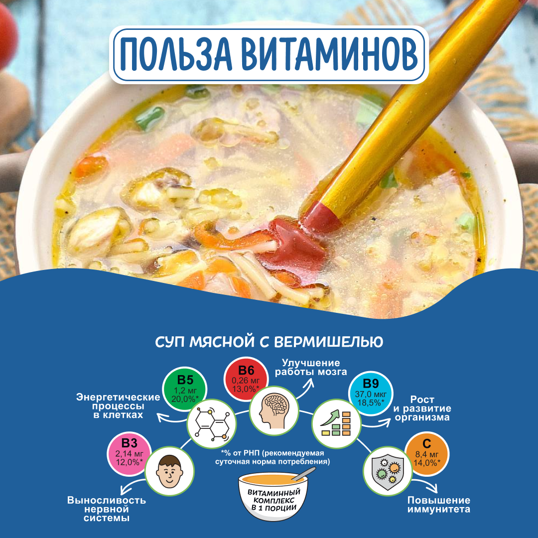 Суп Мясной с вермишелью 60 гр х 10 шт, Бакалея 101 интересное: