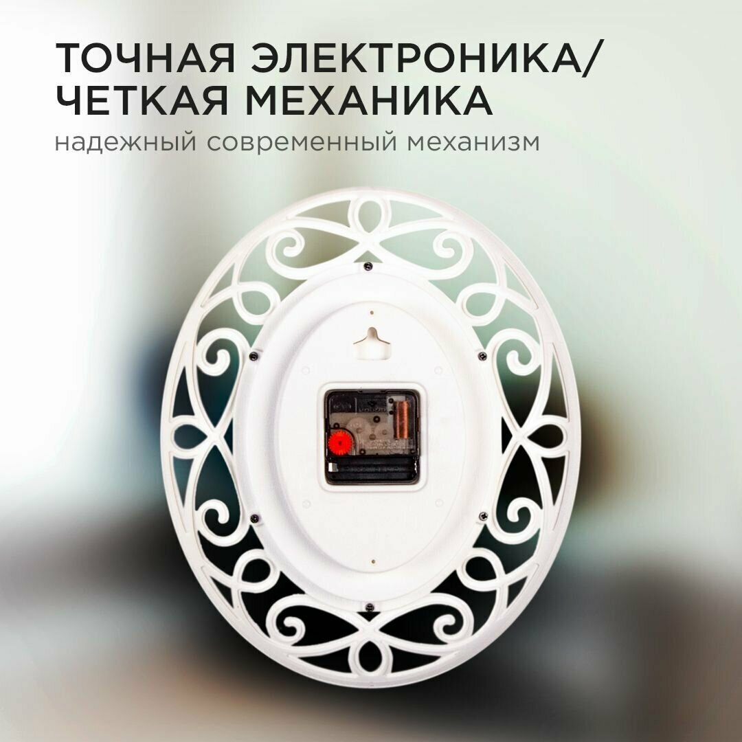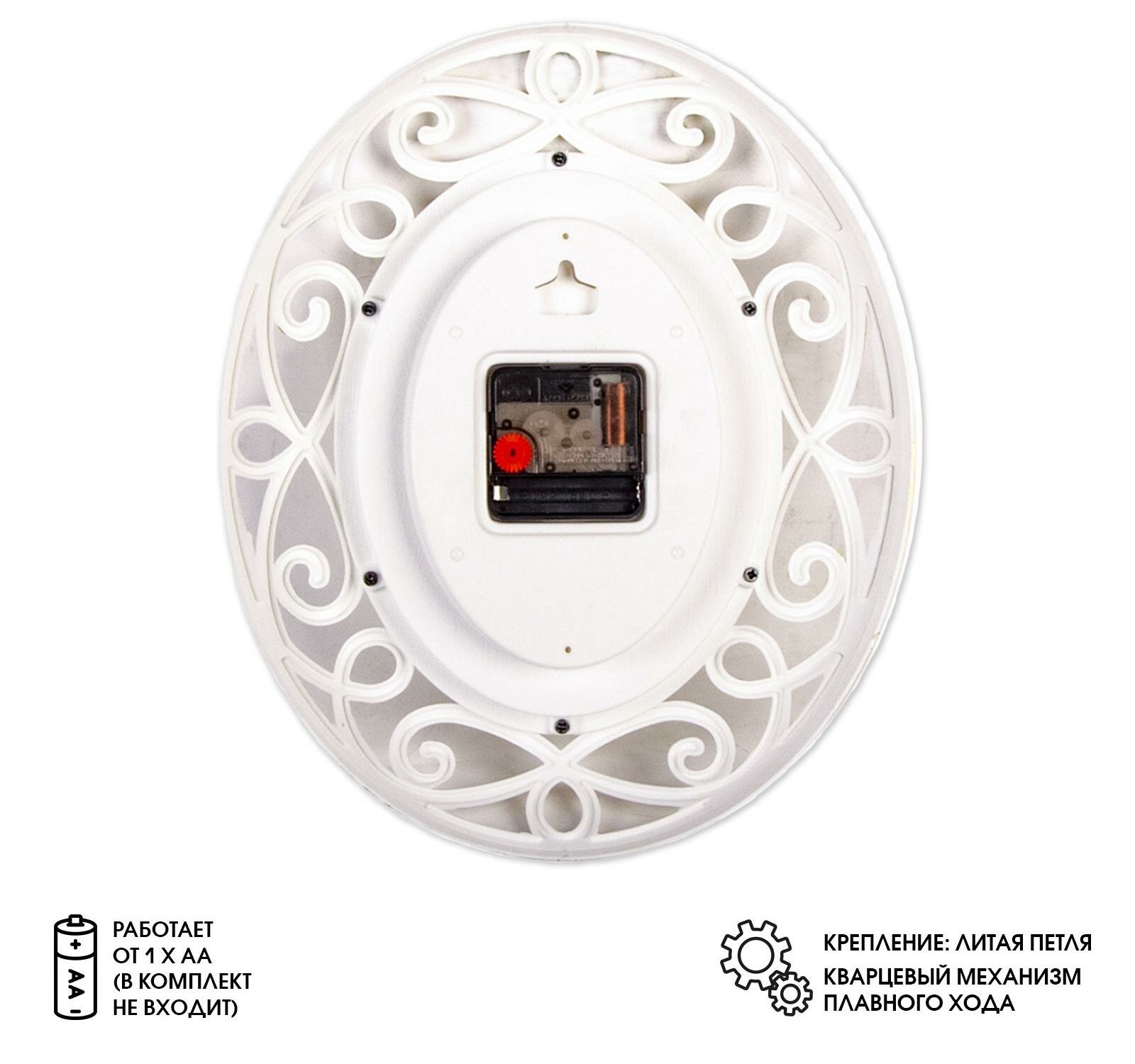 Часы настенные овальные "Витки" 31х26 см, корпус белый с золотом , плавный ход Рубин 5865086 .