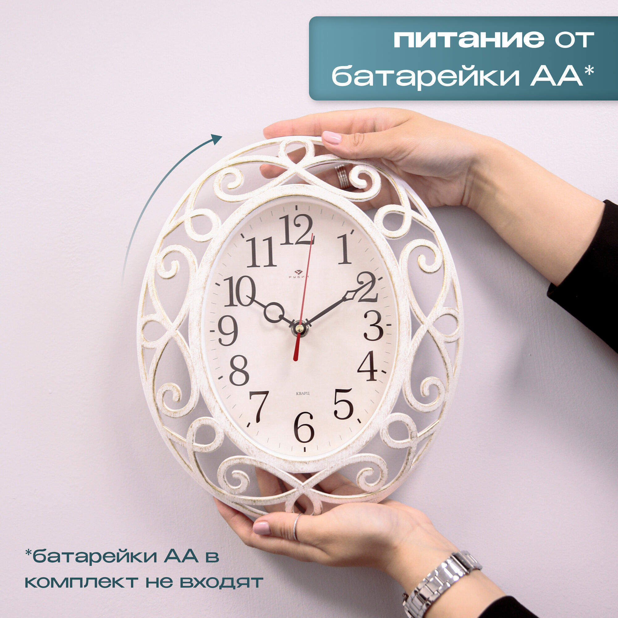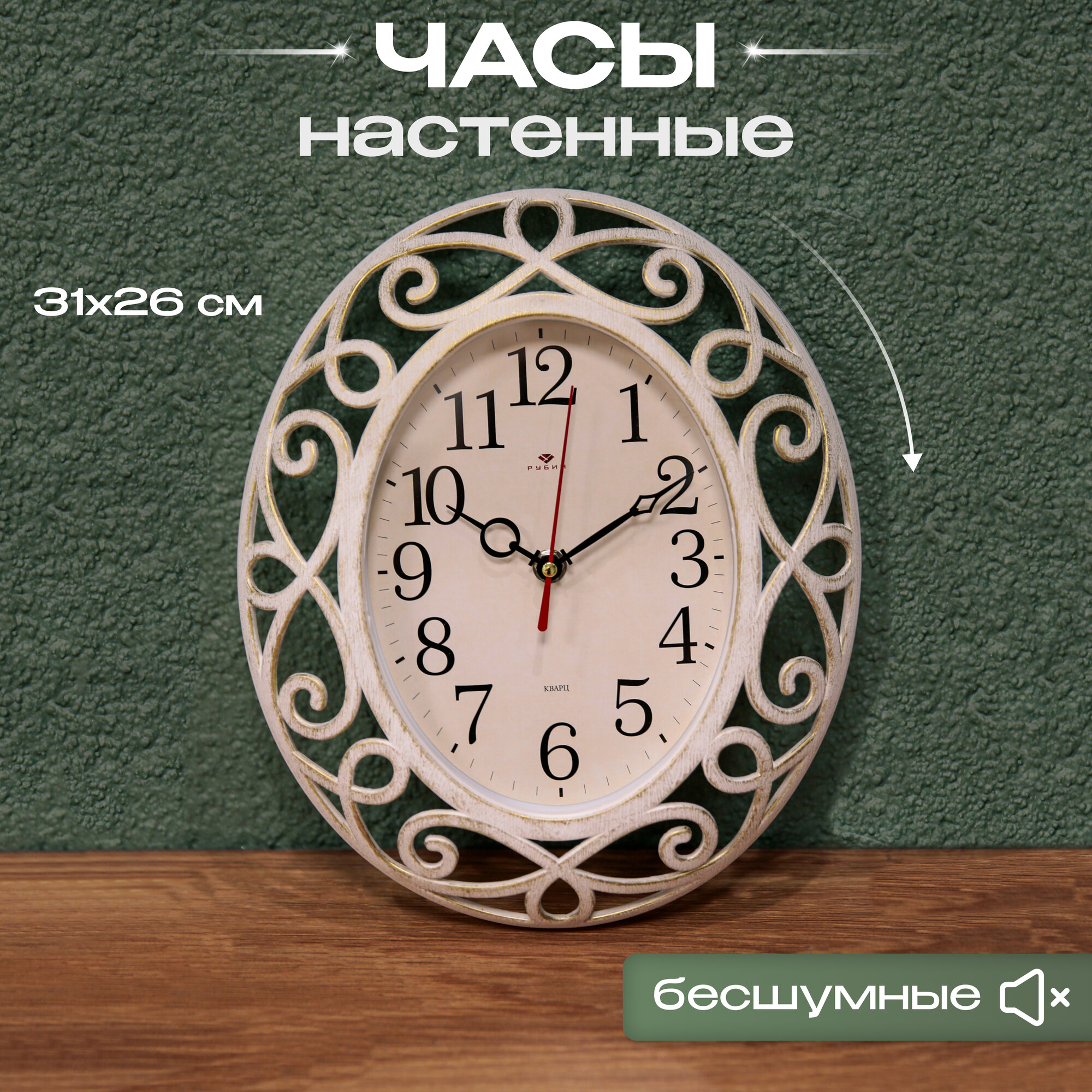 Часы настенные бесшумные Рубин большие, 31 х 26 см Классика овальные