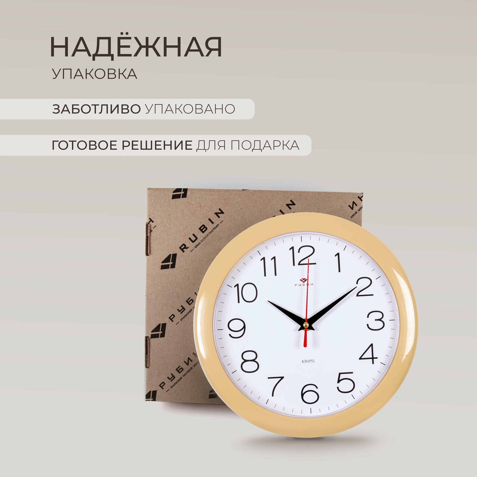Часы настенные большие Рубин бесшумные, 24.5 см 2323-308 кварцевые