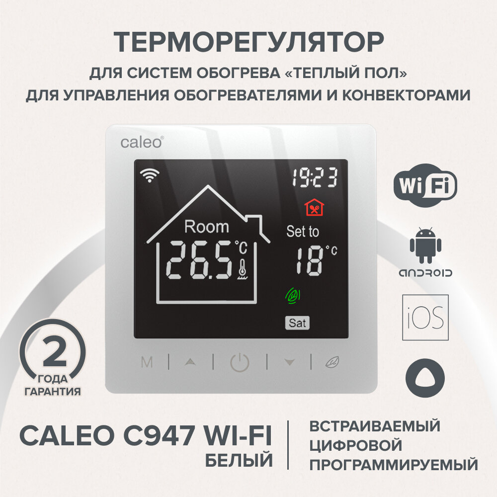 Терморегулятор CALEO C947 Wi-Fi встраиваемый, цифровой, программируемый, 3,5 кВт (белый) интересное: