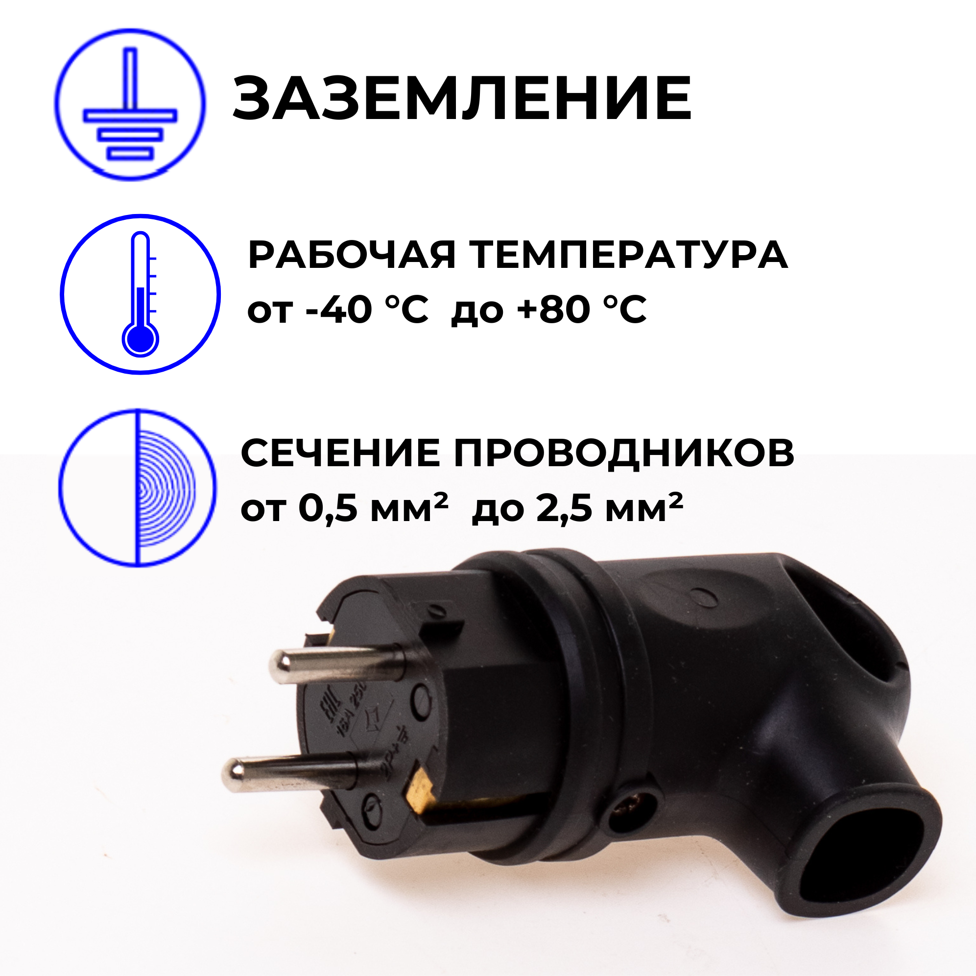 Вилка угловая однофазная с ушком каучук Elestaroro