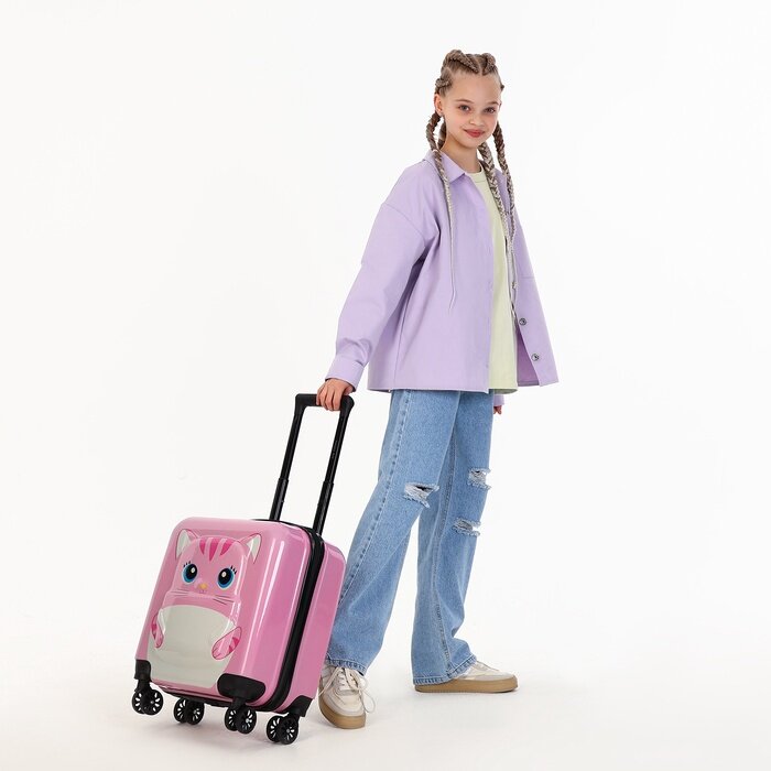Чемодан дет. Котик 20", 35х20х40, отд. на молнии, 4 колеса, розовый