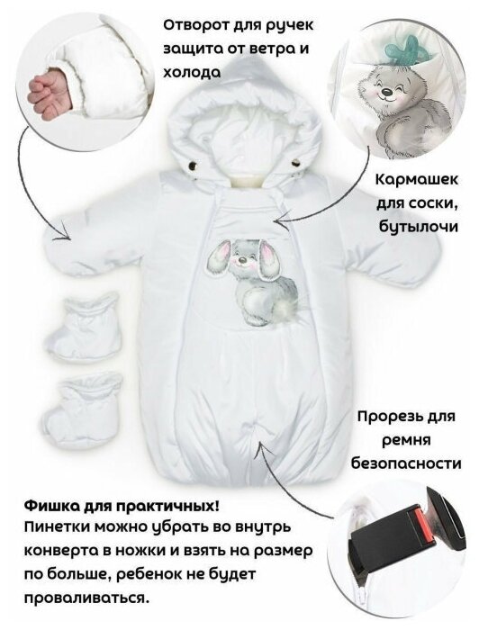 Комбинезон-трансформер детский для новорожденных зимний.Malek Baby., Белый арт.147шм (62 см)