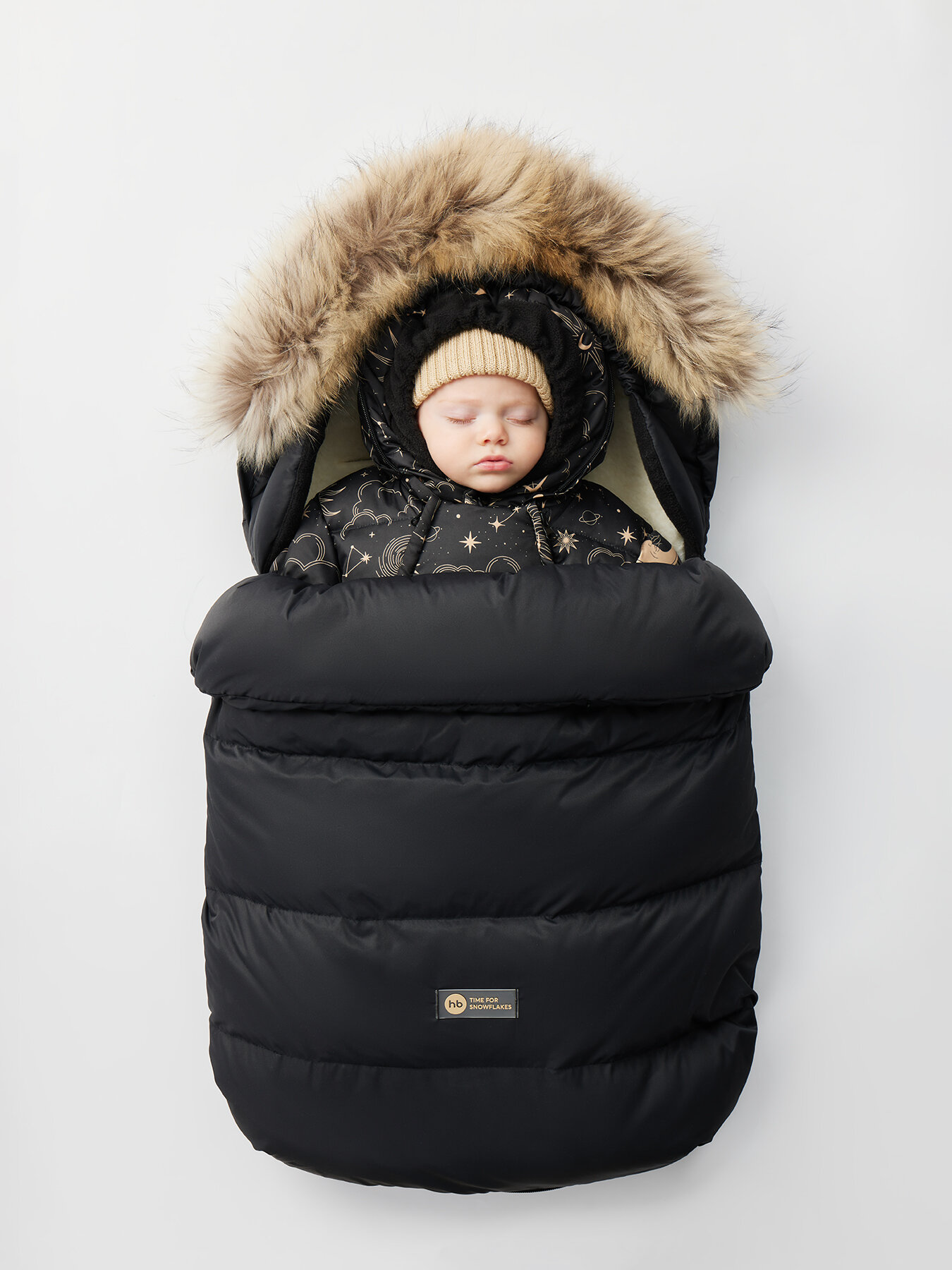 Сохранить89083, Комбинезон для новорожденных зимний, комбинезон для мальчиков и девочек, опушка из меха енота, конверт в коляску, черный, рост 68-74 интересное: