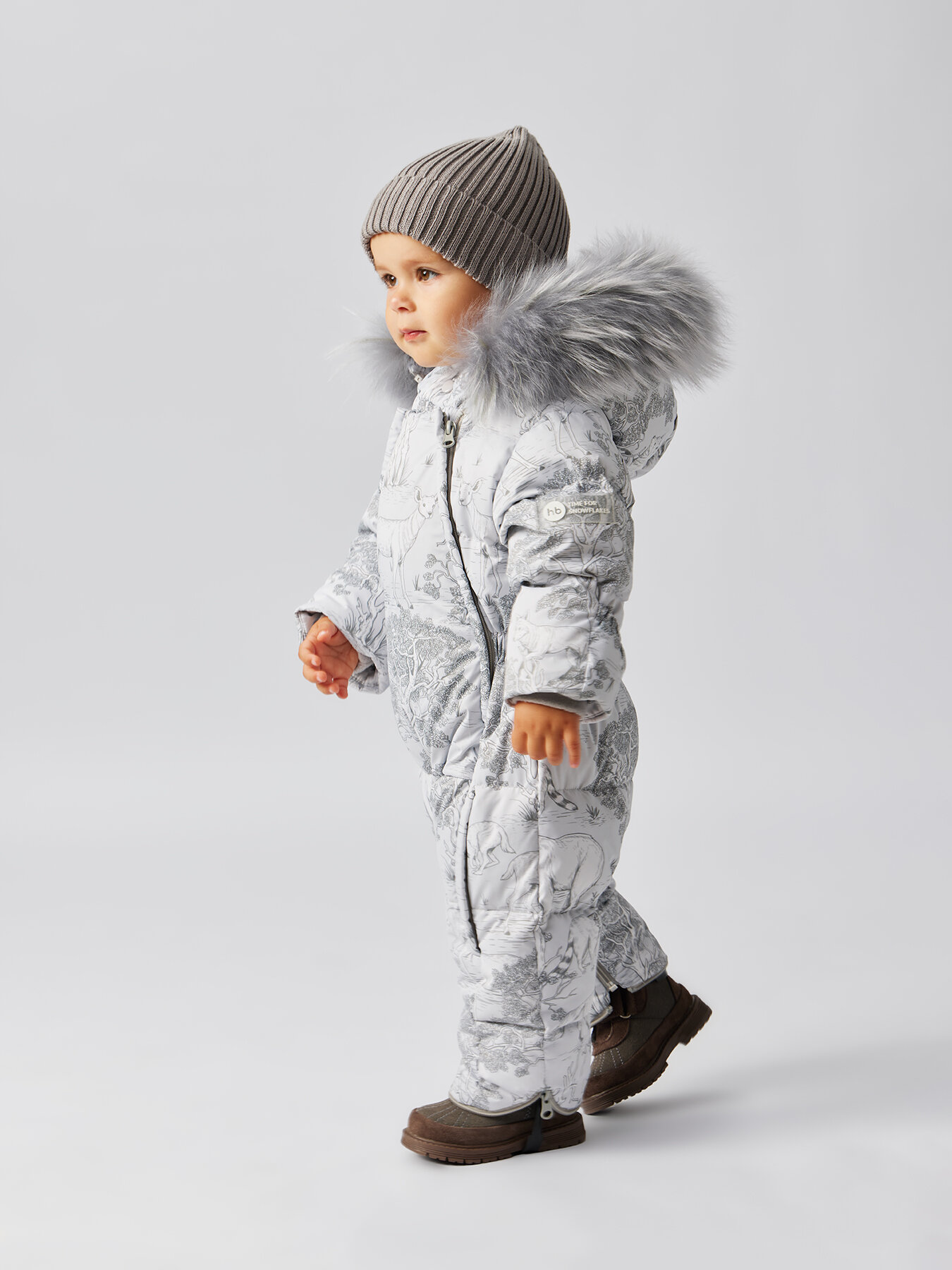 Купить 89083, Комбинезон для новорожденных зимний, комбинезон для мальчиков и девочек, опушка из меха енота, конверт в коляску, серый, рост 68-74