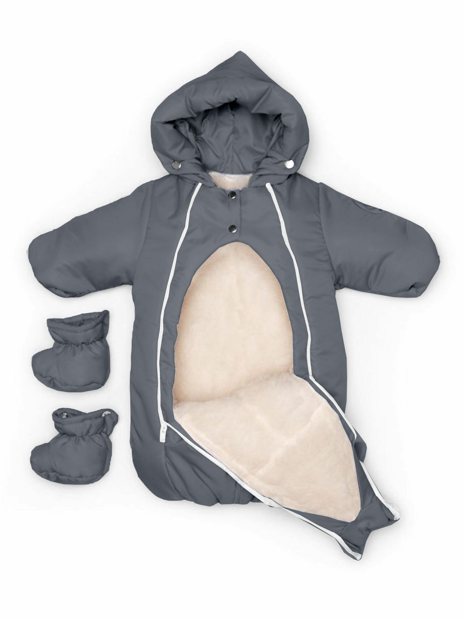 Комбинезон-конверт "трансформер", Зима,подклад с содержанием шерсти отстёгивается Темно-Серый арт.147шм (62 см)