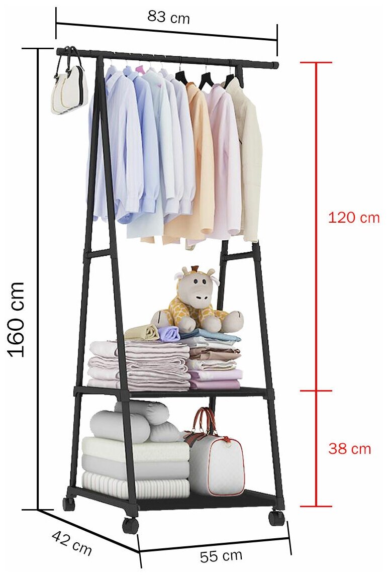 Напольная вешалка "Sokoltec" HW47881, металл, 55х160 см, черная, с полками, с колесами