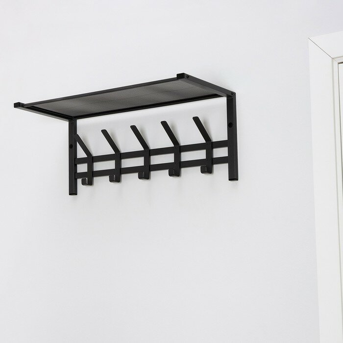 Вешалка настенная ЗМИ с полкой, металлическая, 60х22х26,5, черная