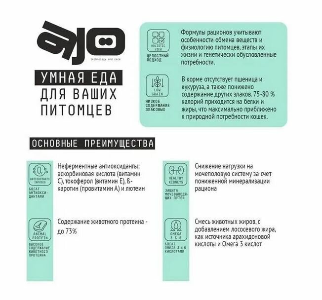 AJO Cat Delicate Taste 1,5 кг с ухой полнорационный корм для привередливых кошек и котят с индейкой