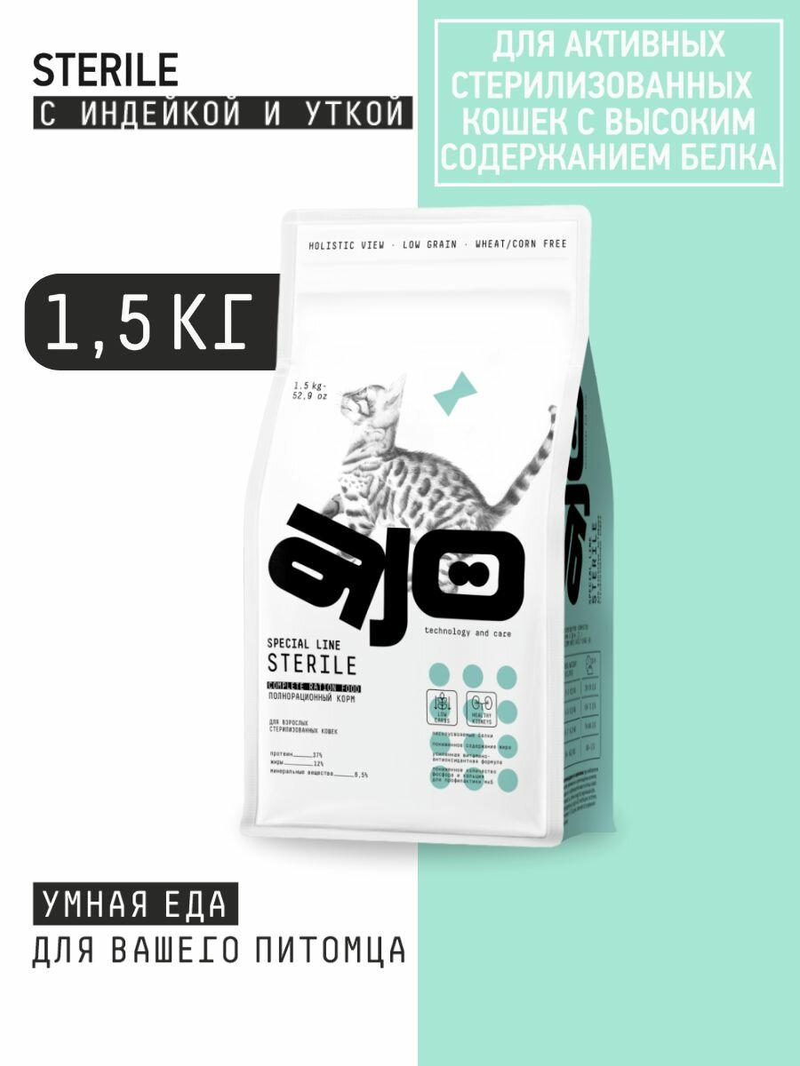 Сухой корм AJO Cat Sterile для активных стерилизованных кошек с высоким содержанием белка, с индейкой и уткой, 1.5 кг