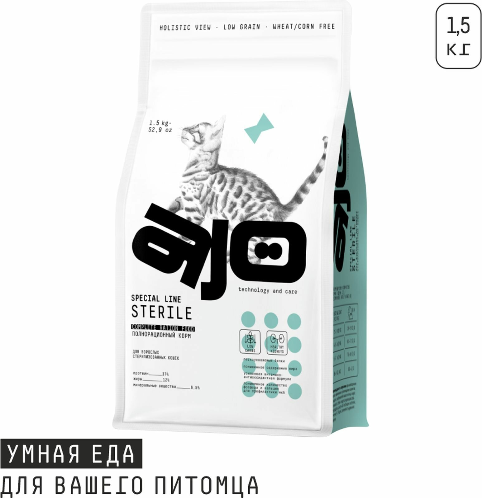 Корм сухой AJO Sterile для активных стерилизованных кошек, 1,5кг