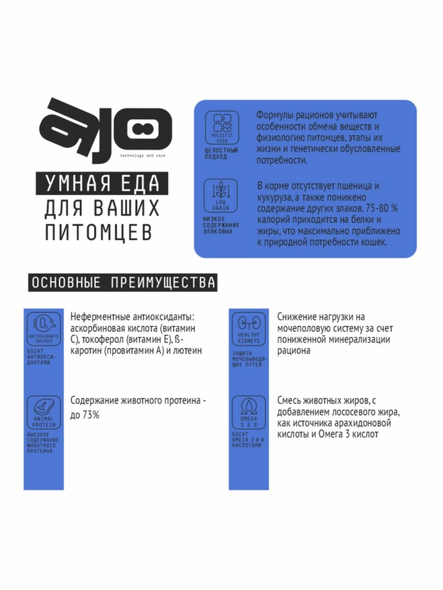 Корм для кошек сухой AJO / Айо Cat Sterile для взрослых стерилизованных животных, гранулы 400г / кошачья еда для ежедневного кормления